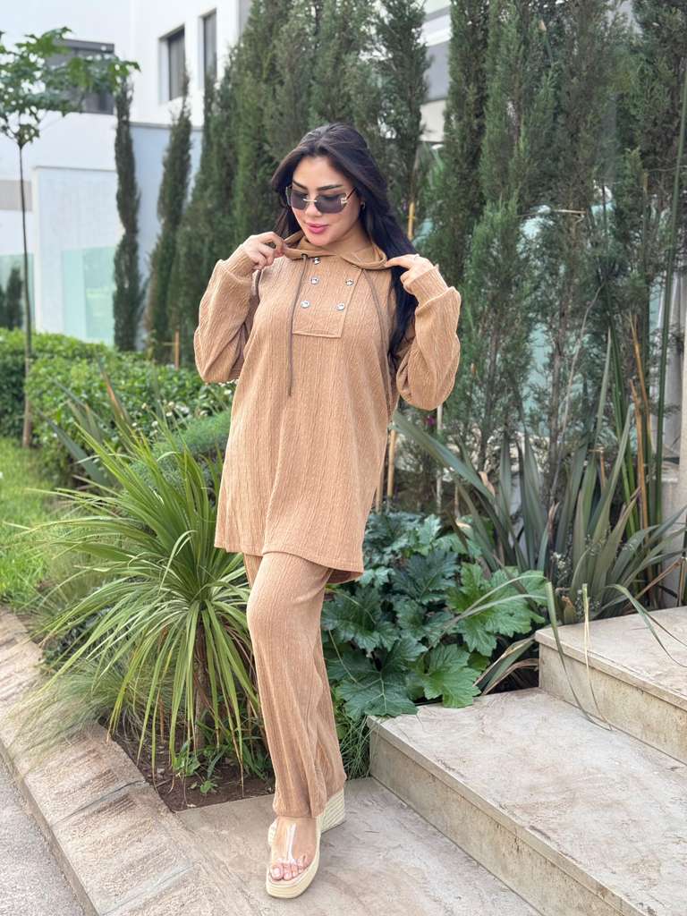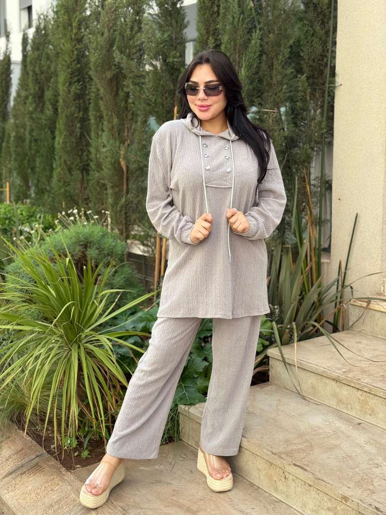 طقم مكون من توب + سروال بخامة الخيط الناعمة، كيجي منسق وجاهز للخروج بلا مجهود 😍